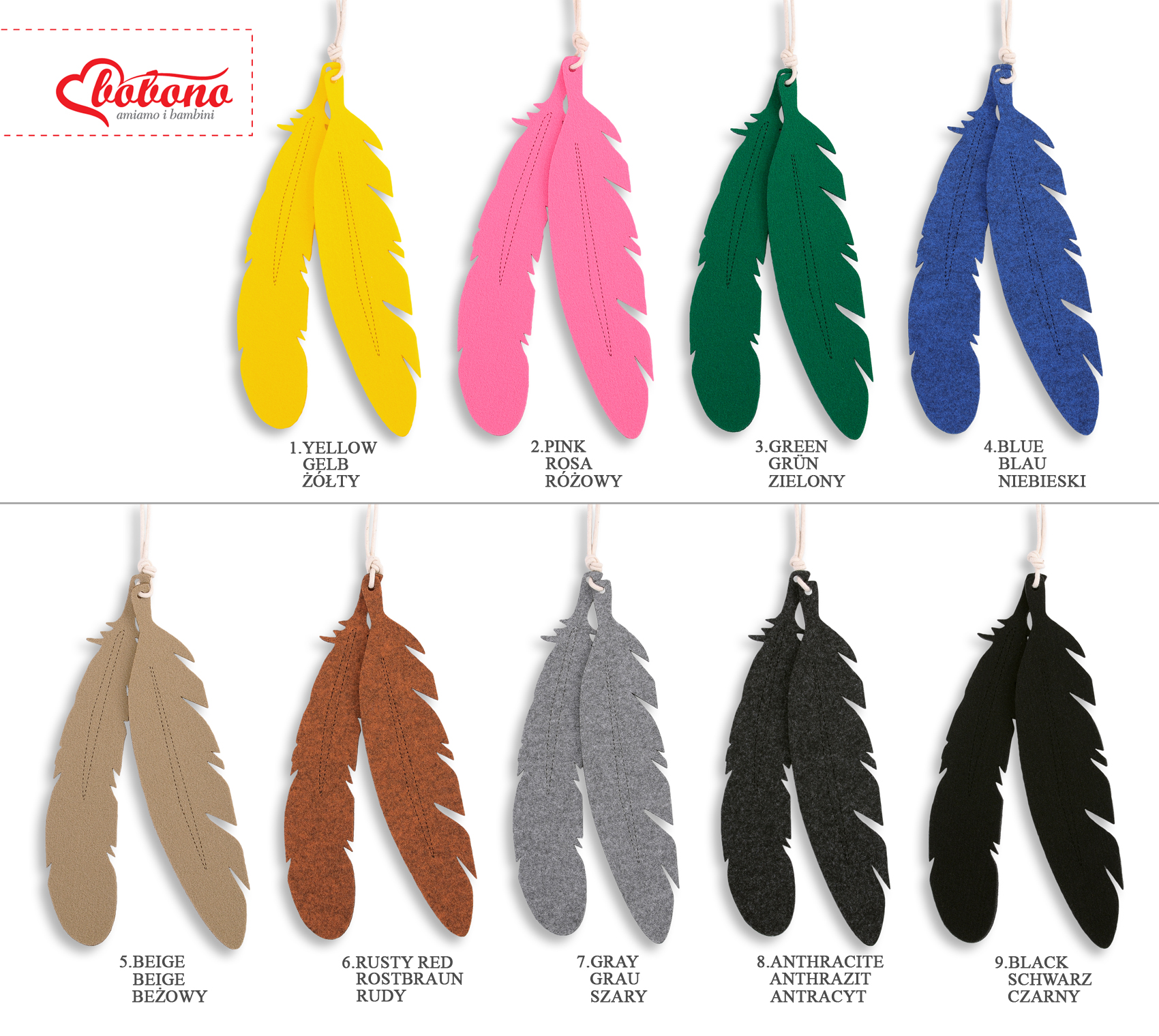 Twee decoratieve, grote, vilten veren bevestigd aan iedere tipi-tent.