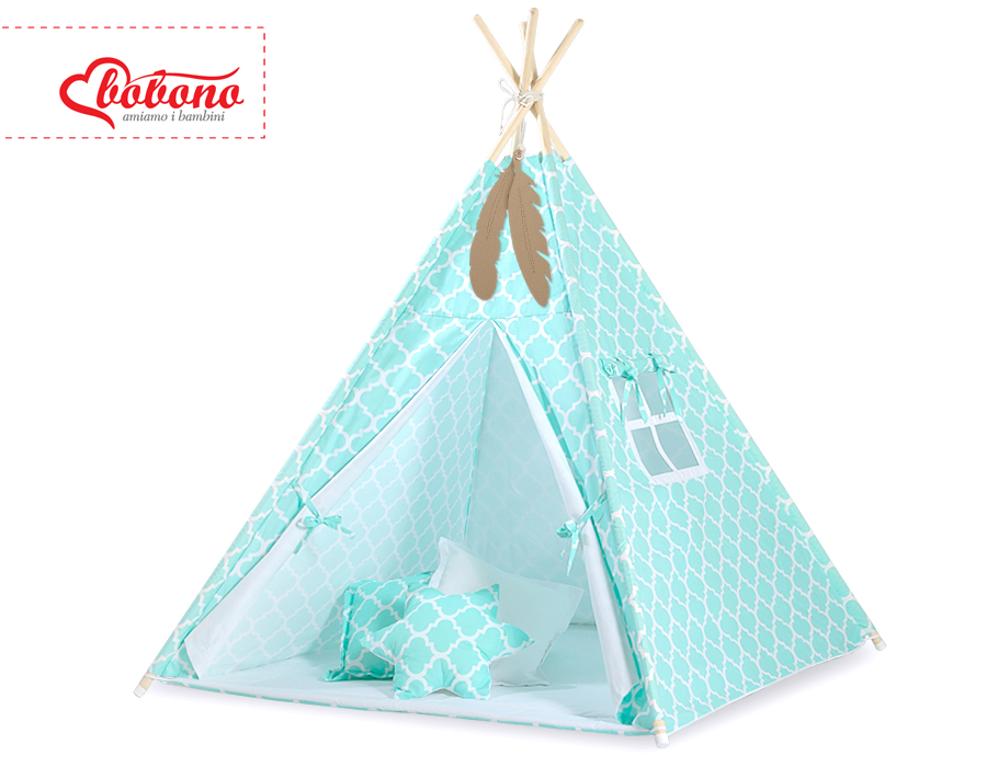 Kleinbaby.nl » Speelgoed Knuffels » Tipi-tenten » Tipi-tenten » Tipi-tent Speelkleed GRATIS decoratieve veren Mint Marokko