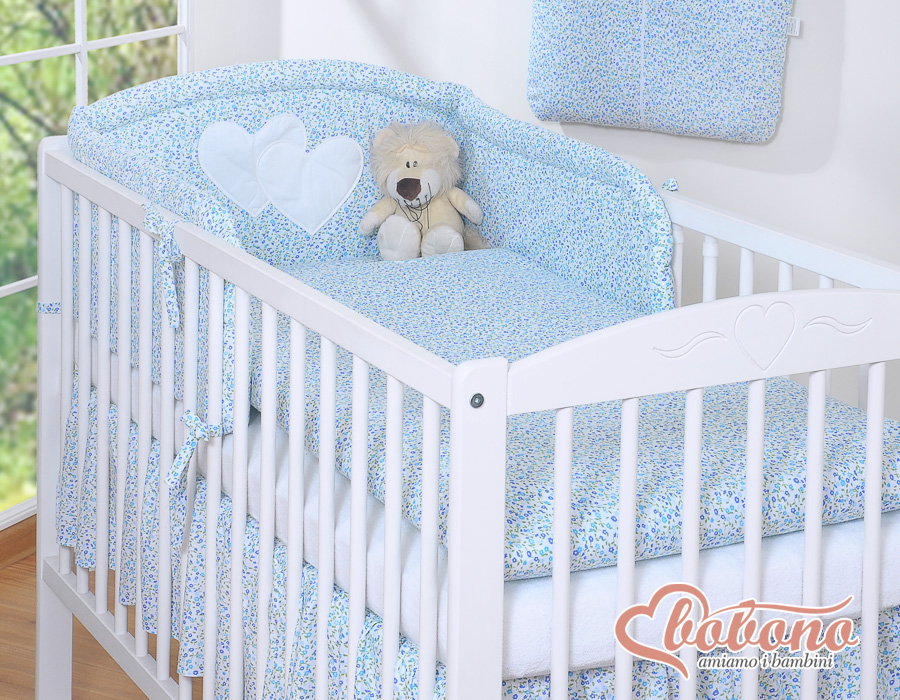 Hoog, licht afgerond hoofdbord met decoratieve harten, mooi afgezet met satijnen biezen. Speciaal afgezette, versterkte en verdikte bovenrand voor nog meer zachtheid en veiligheid in het ledikant.