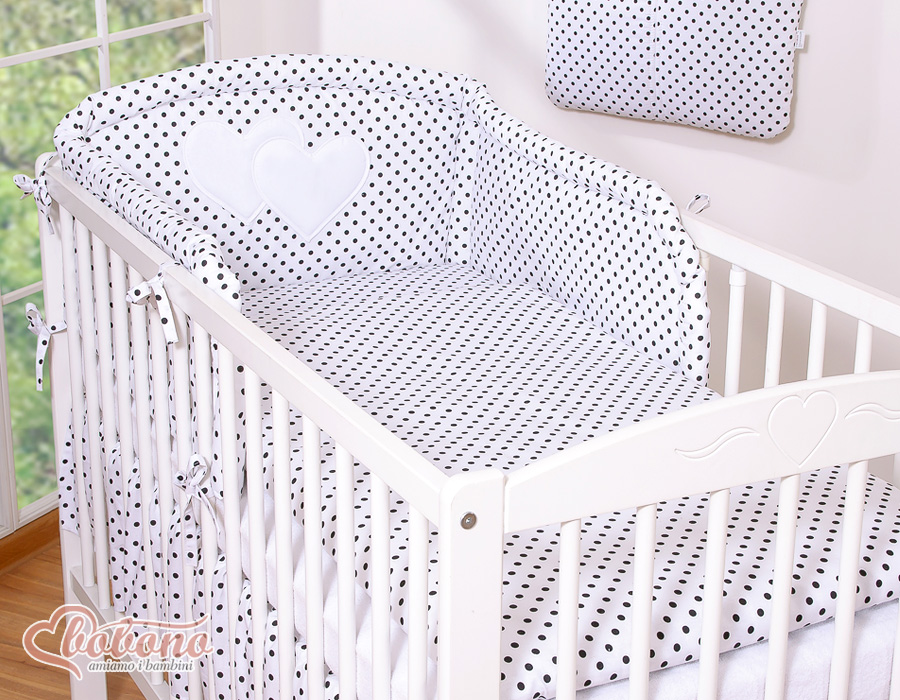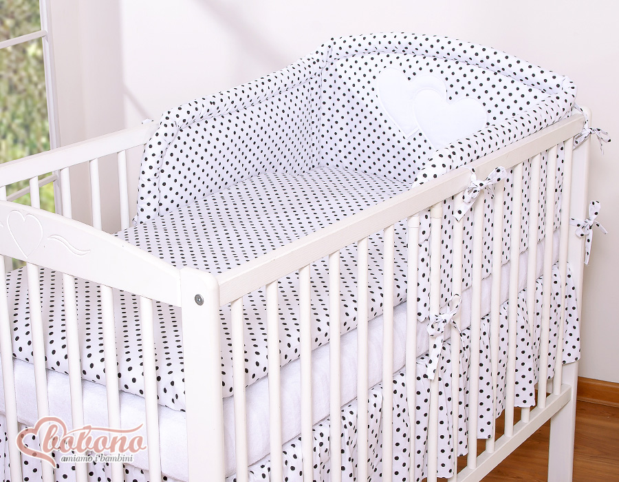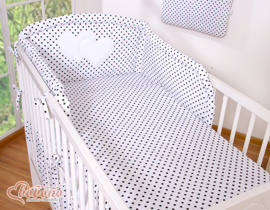 Kleinbaby.nl » Beddengoed voor Ledikant » Beddengoed Set Collectie Harten » 120cm ledikant Beddengoed Set » Universele Bedbumper - Harten » Universele Bedbumper voor Kinderbed - Harten Zwart Polkaprikker