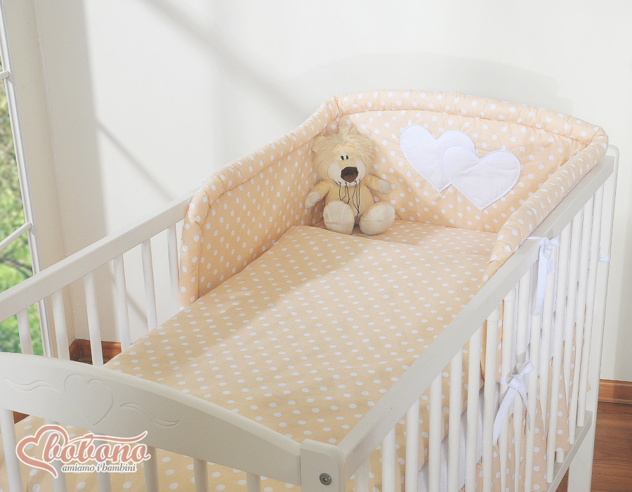Kleinbaby.nl » Beddengoed voor Ledikant » Beddengoed Set Collectie Harten » 140cm ledikant Beddengoed Set » Universele Bedbumper » Universele Bedbumper voor Ledikant - Harten Beige Polkaprikker