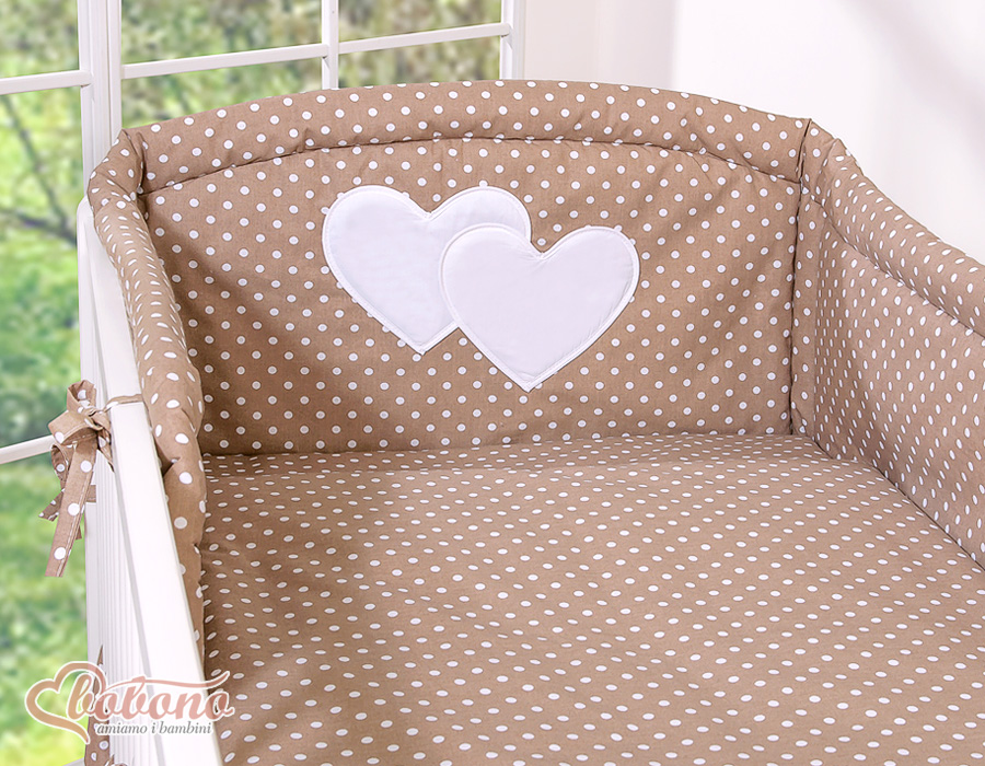 Kleinbaby.nl » Beddengoed voor Ledikant » Beddengoed Set Collectie Harten » 120cm ledikant Beddengoed Set » Universele Bedbumper - Harten » Universele Bedbumper voor Ledikant - Harten Bruin Polkaprikker