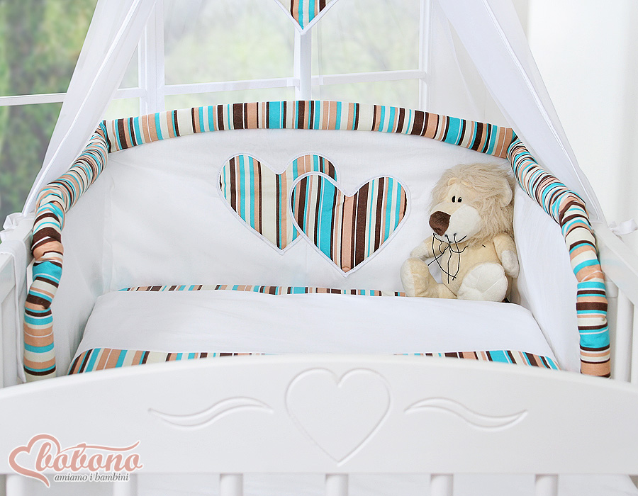Kleinbaby.nl » Beddengoed voor Ledikant » Beddengoed Set Collectie Harten » 120cm ledikant Beddengoed Set » Universele Bedbumper - Harten » Bedbumper voor Ledikant - Harten Bruin Snijder