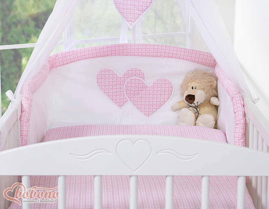 Kleinbaby.nl » Beddengoed voor Ledikant » Beddengoed Set Collectie Harten » 120cm ledikant Beddengoed Set » Universele Bedbumper - Harten » Universele Bedbumper voor Ledikant - Harten Roze Geruit