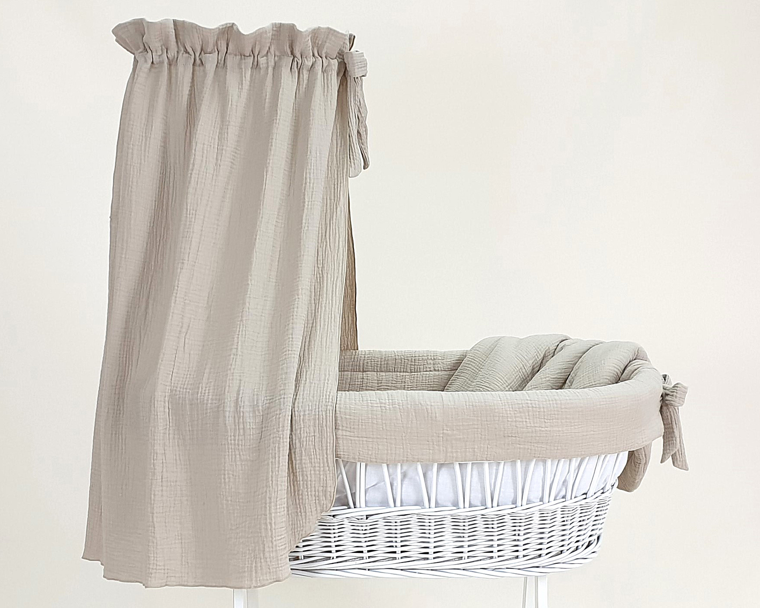 Wieg bekleding - gemaakt van 100% katoen-mousseline, passend voor rieten wiegen van 55-60 × 90 × 30 cm (B × L × H), bovenrandomtrek 250-260 cm.