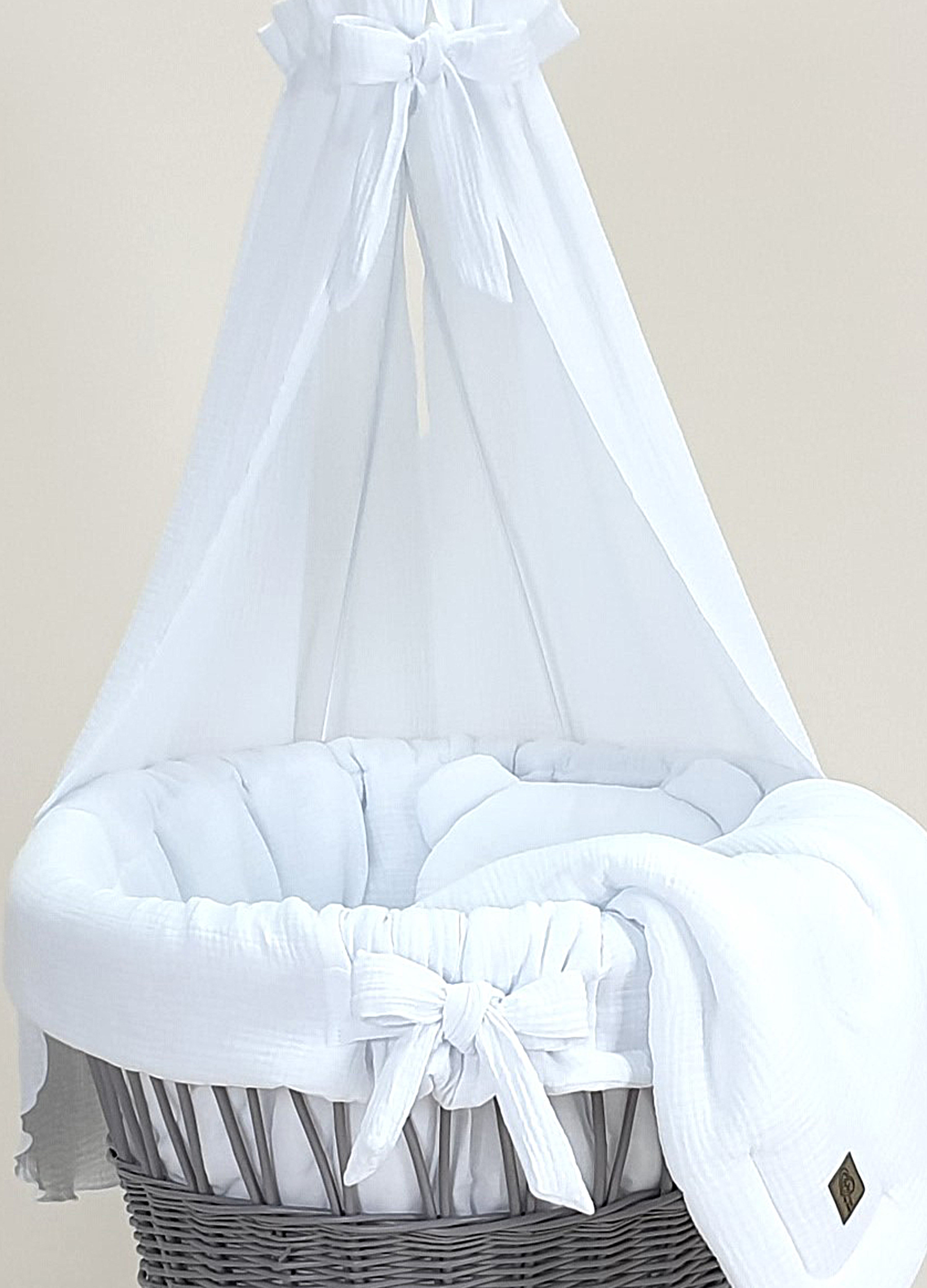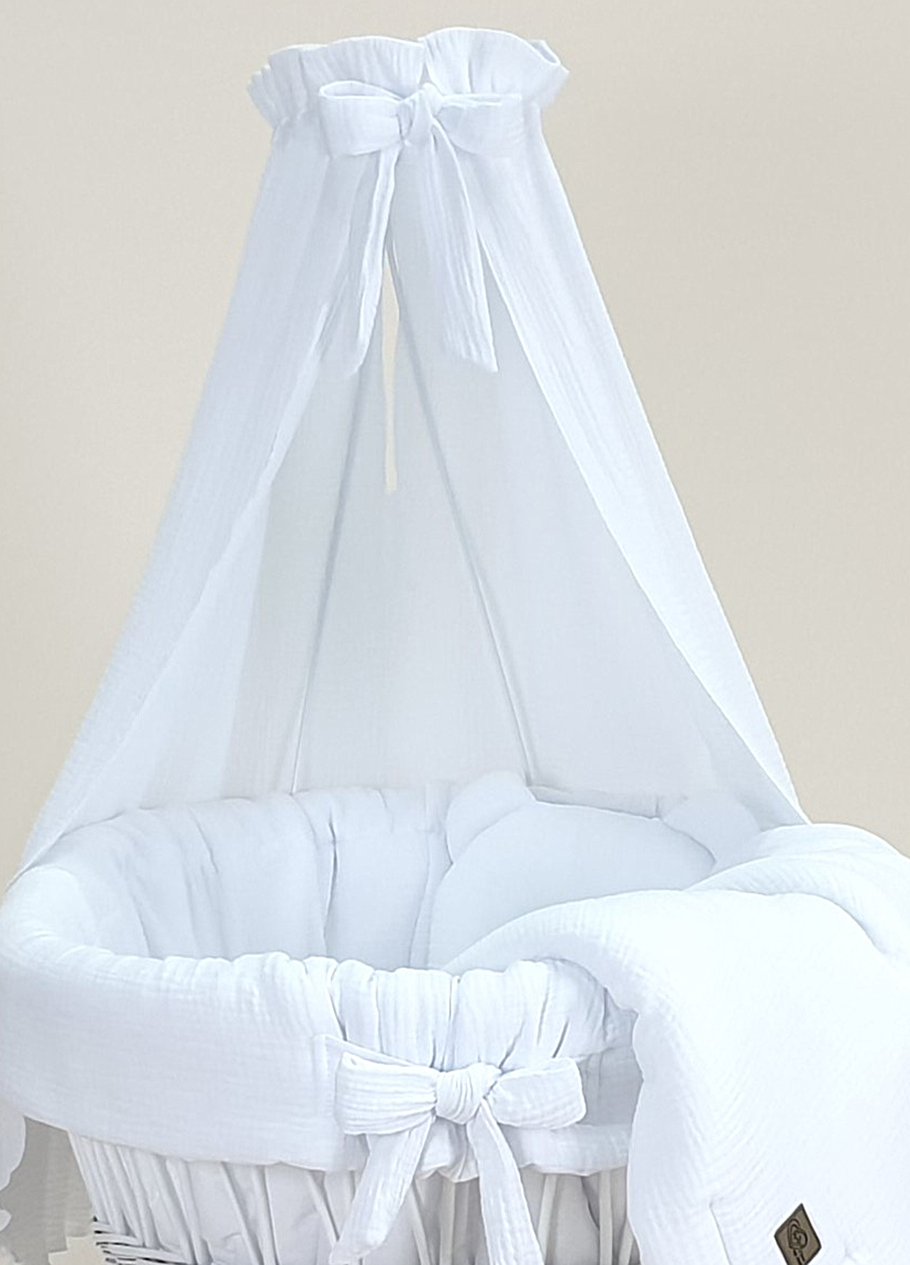 Wieg bekleding - gemaakt van 100% katoen-mousseline, passend voor rieten wiegen van 55-60 × 90 × 30 cm (B × L × H), bovenrandomtrek 250-260 cm.
