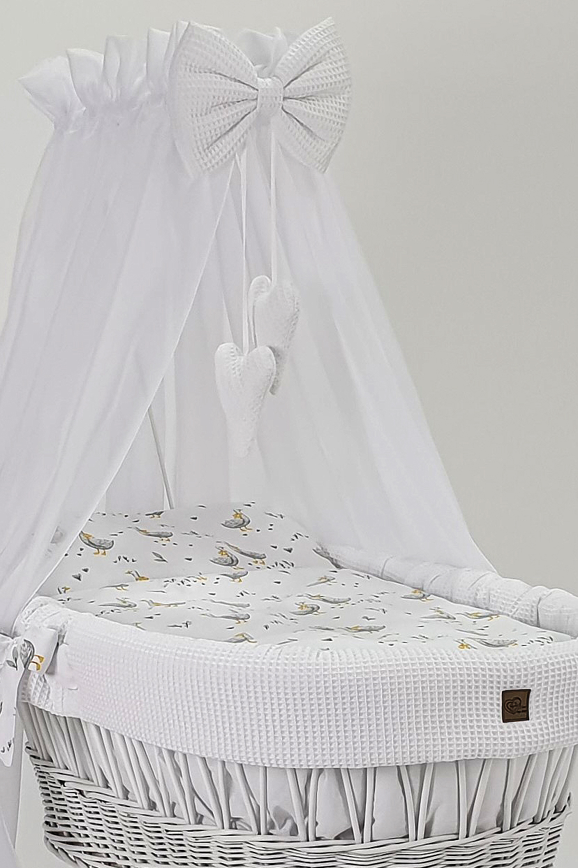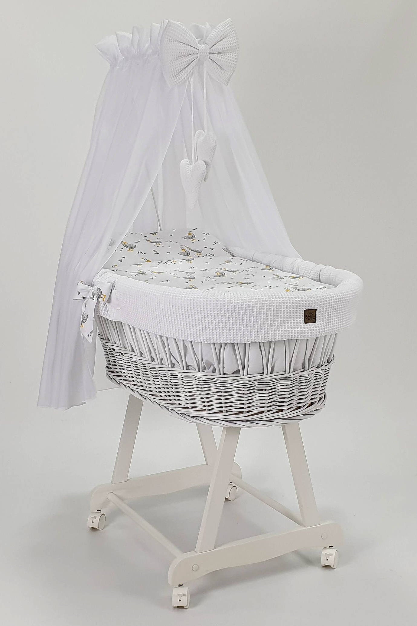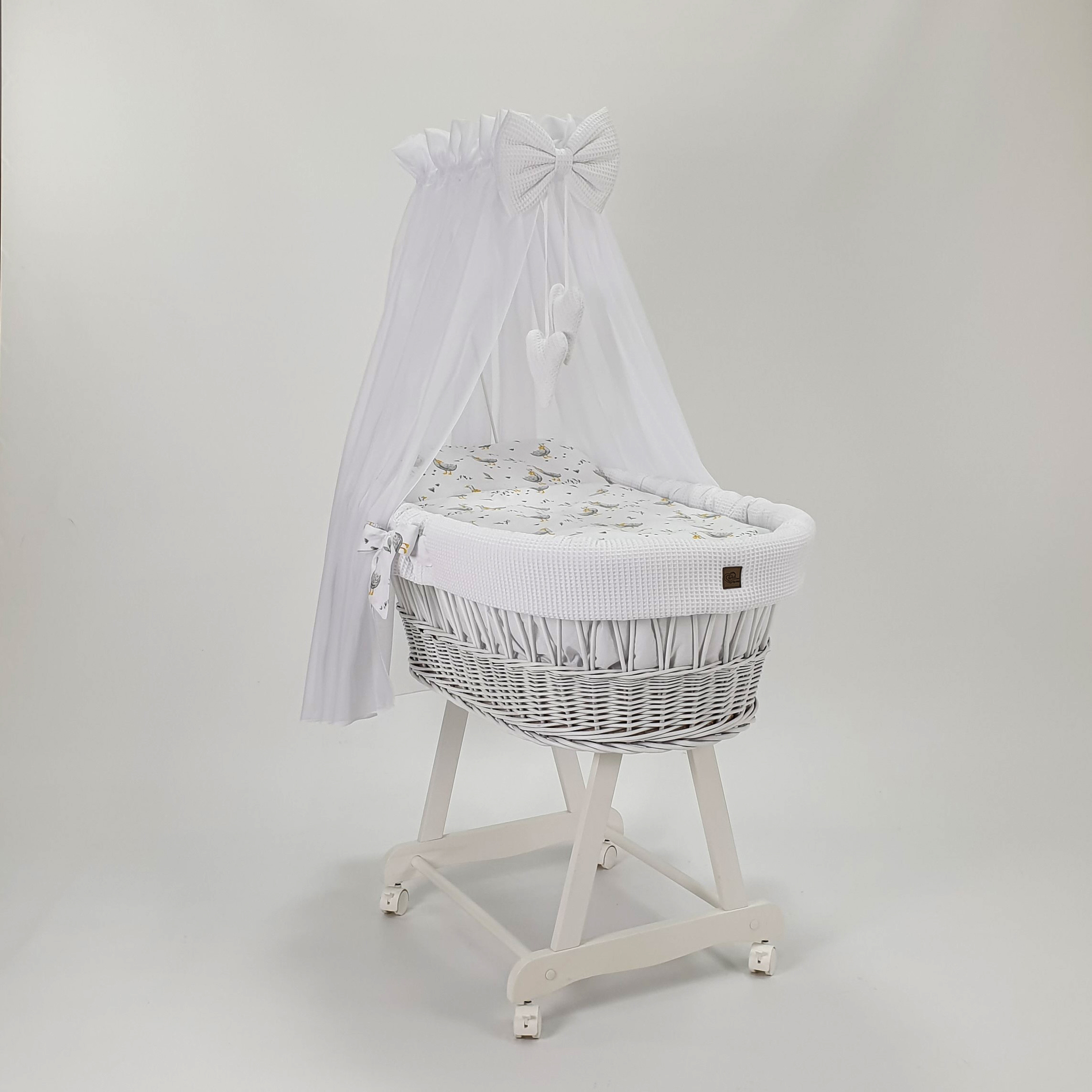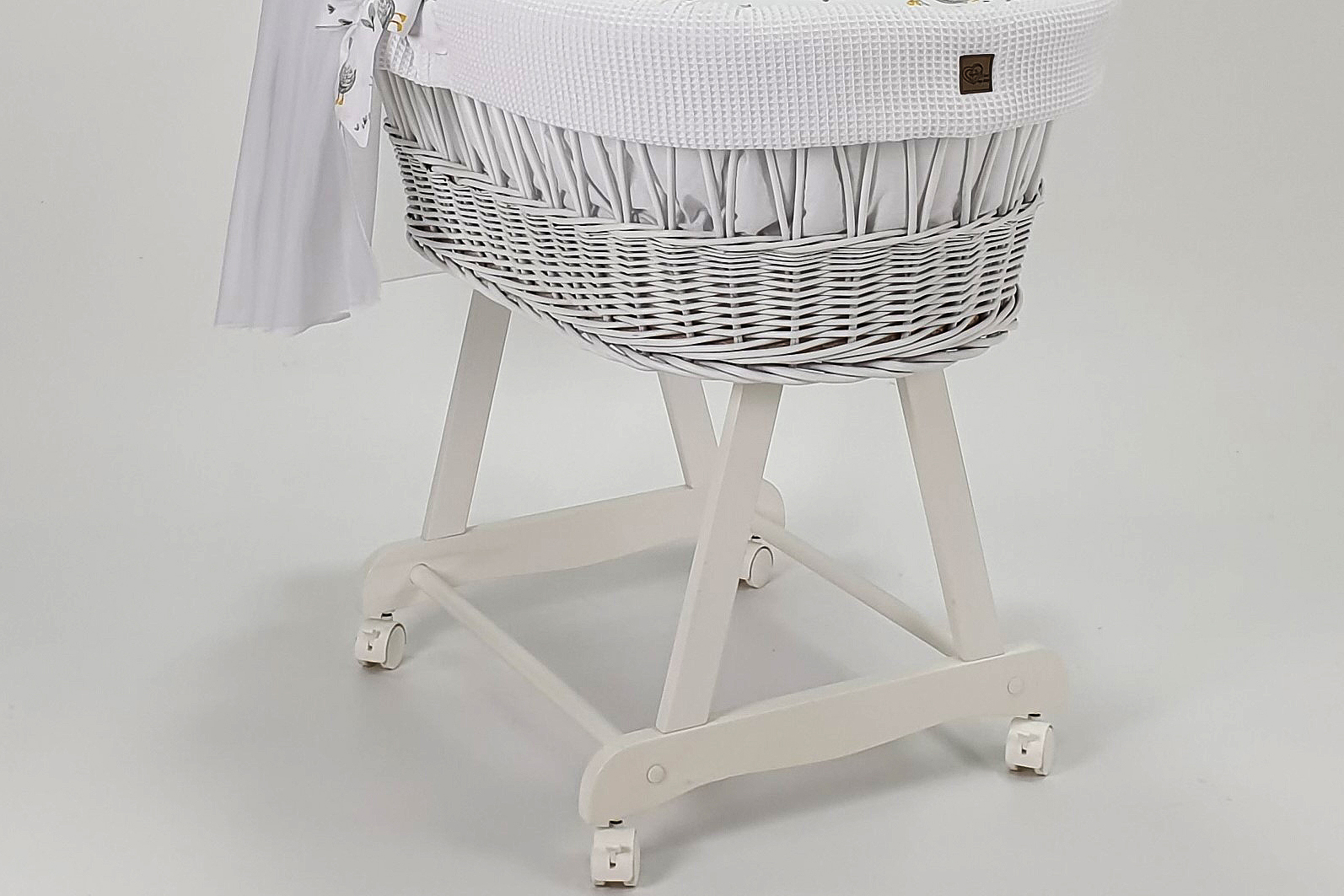 Rotan mand in witte kleur, handgemaakt van hoogwaardig Pools wilgenhout en afgewerkt met milieuvriendelijke verf op waterbasis, volledig veilig voor je baby.