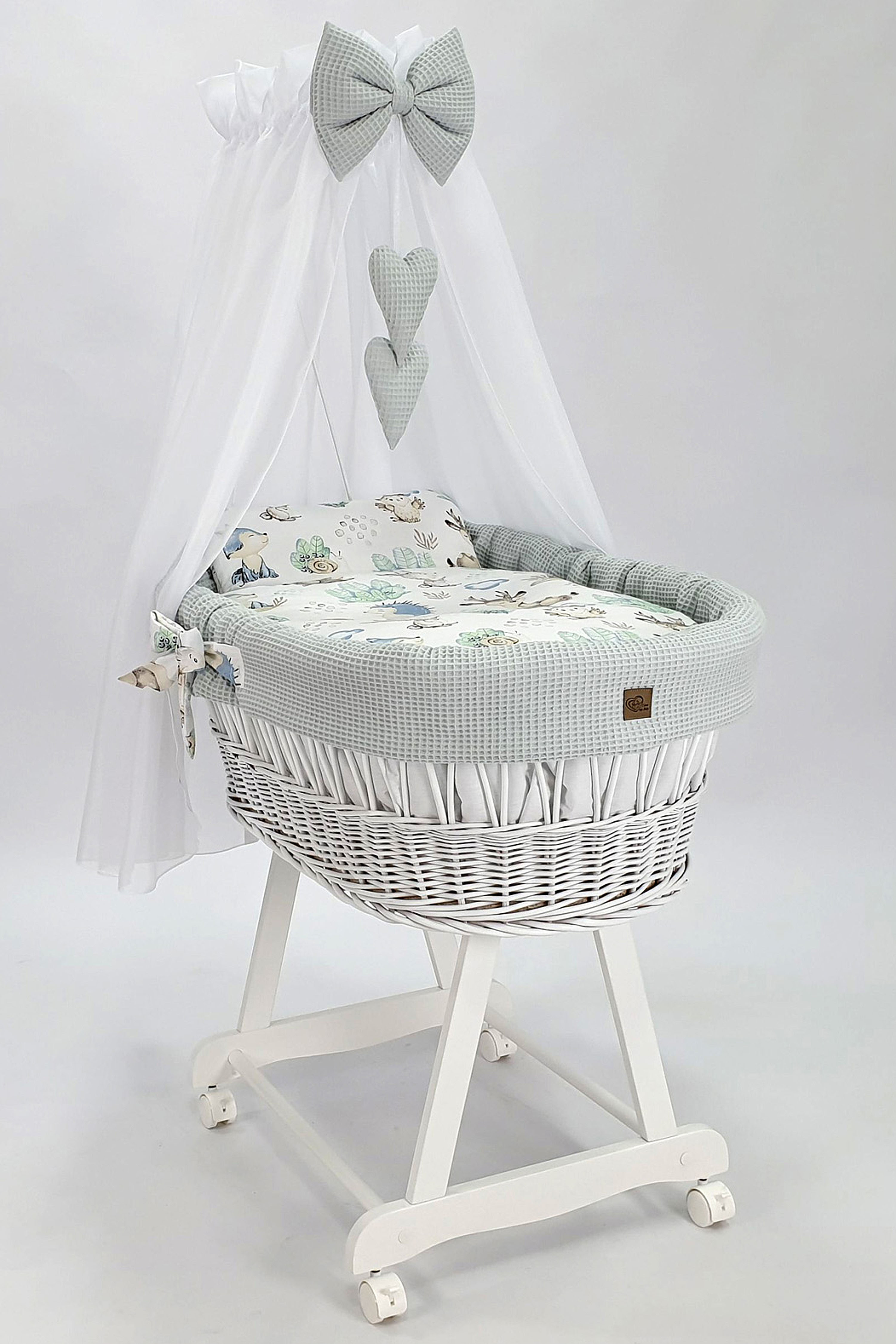 Ons wiegje is niet alleen een plek om te slapen, maar een knus nest voor je kleintje, perfect om ze in alle rust te laten groeien en slapen. De handgemaakte manden, gemaakt van natuurlijk wilgenhout, bieden een stevige en veilige omgeving voor je baby. Dankzij het stijlvolle ontwerp en de hoge kwaliteit van de materialen zal het wiegje jarenlang meegaan, terwijl het de kamer van je baby een charmante en tijdloze uitstraling geeft.