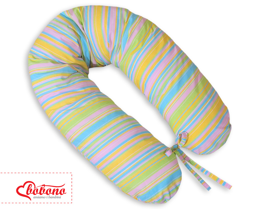 Tijdens de zwangerschap: ideaal voor de laatste maanden van de zwangerschap wanneer de buik groter en groter wordt en het moeilijk wordt om in een comfortabele positie te slapen of te rusten. De unieke vorm en vulling stabiliseren de zijdelingse positie en helpen om de zwangere vrouw de meest comfortabele positie te vinden.