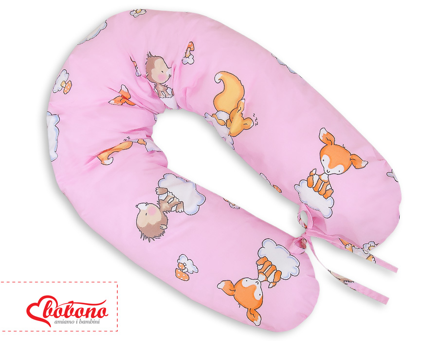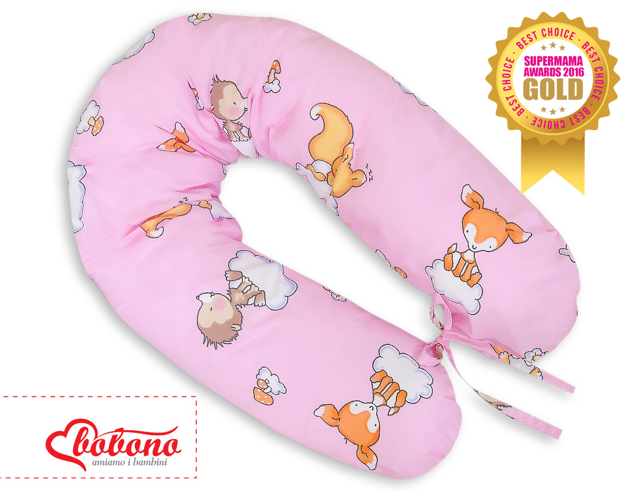 Tijdens de zwangerschap: ideaal voor de laatste maanden van de zwangerschap wanneer de buik groter en groter wordt en het moeilijk wordt om in een comfortabele positie te slapen of te rusten. De unieke vorm en vulling stabiliseren de zijdelingse positie en helpen om de zwangere vrouw de meest comfortabele positie te vinden.