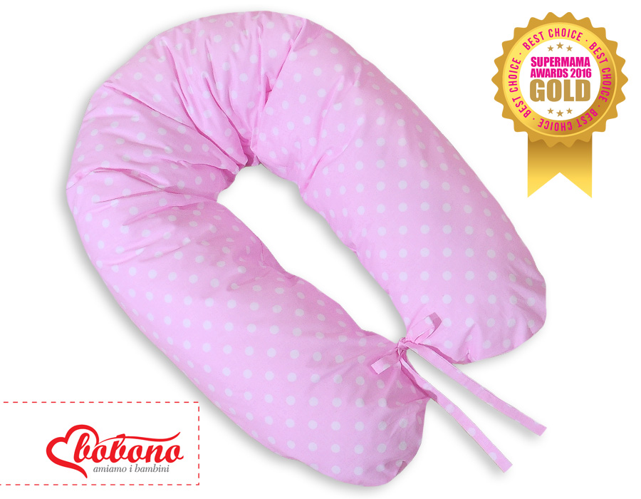 Zwangerschapskussen in C-vorm minky Roze Polkaprikker